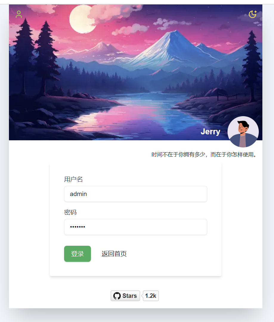 浏览器输入http://NASIP+端口号就可以访问项目页了,项目默认账户与密码为admin/a123456。由于该项目并没有完整后台,所以暂时不支持重置账户。
